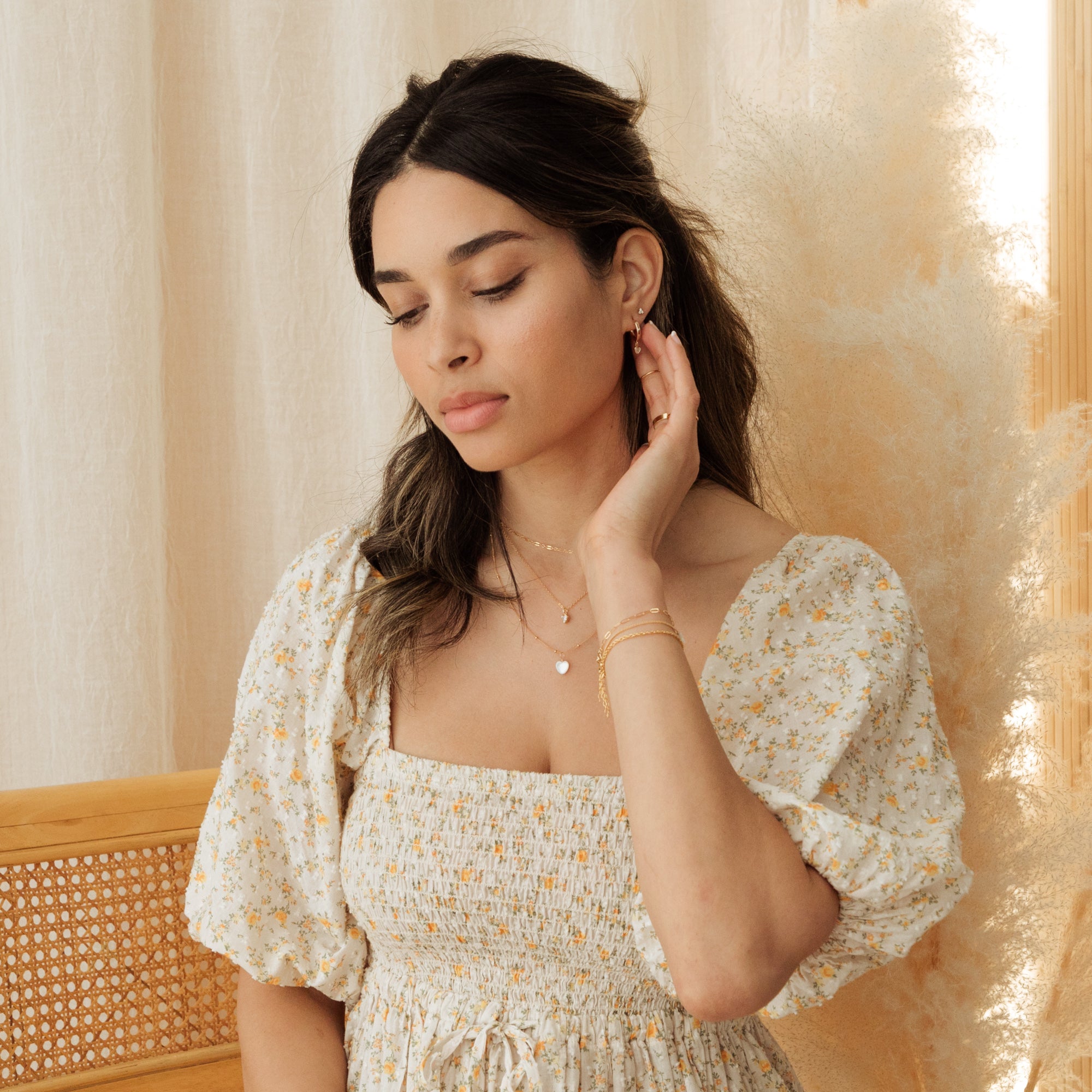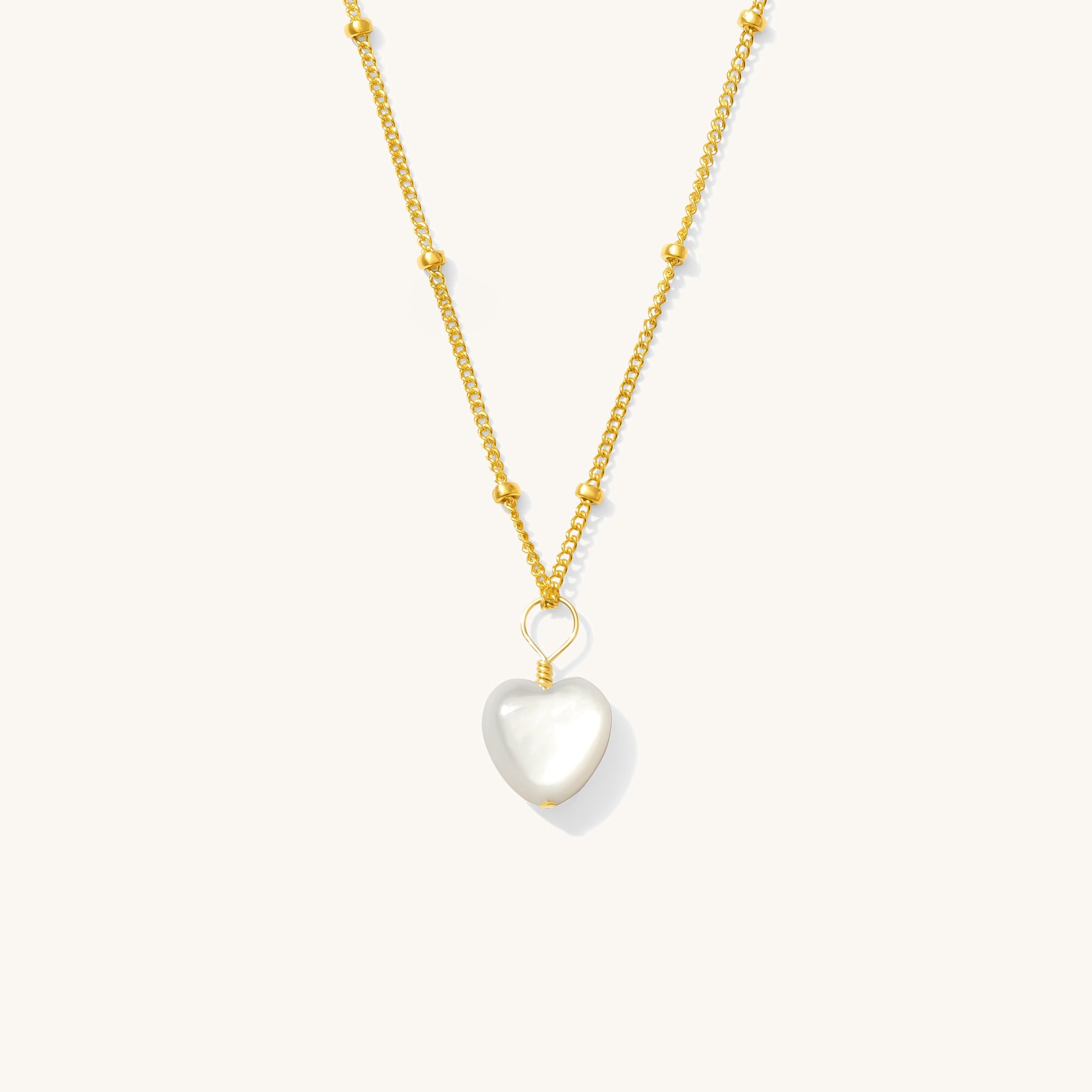 The Pearl Heart Necklace adds a touch of romance to any outfit. A delicate mother of pearl heart charm hangs from a dainty satellite chain, creating a soft and elegant look that’s perfect for both everyday wear and special occasions. Whether you’re layering it with other necklaces or wearing it solo, this piece effortlessly elevates your style with a timeless, feminine charm.